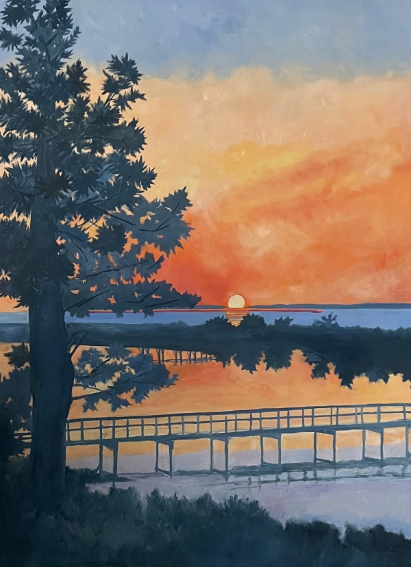 “The Footbridge at Sunset” 48 x 36 inches, oil on canvas by Casey Chalem Anderson